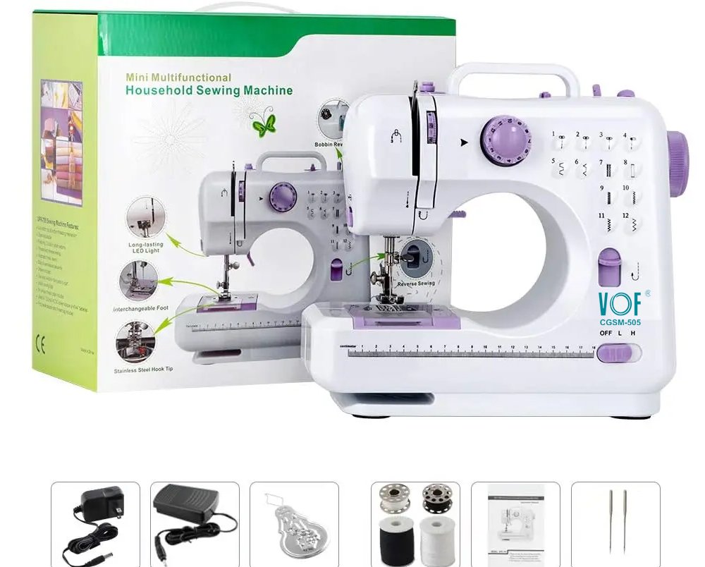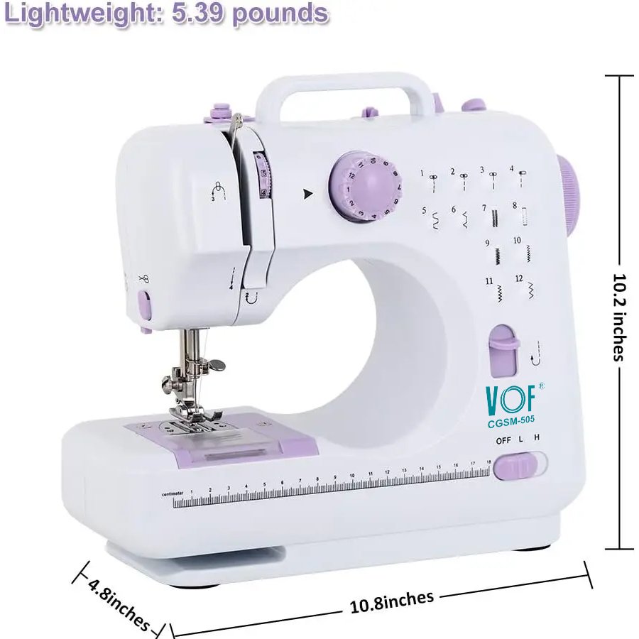 505 Mini Electric Sewing Machine for Beginners and Kids, Portable Sewing Machine with Reverse Sewing and 12 Built-in Stitches